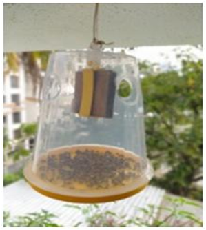 - Application rate: 10 nos./Ha at about 1.5m above the ground below the branches.